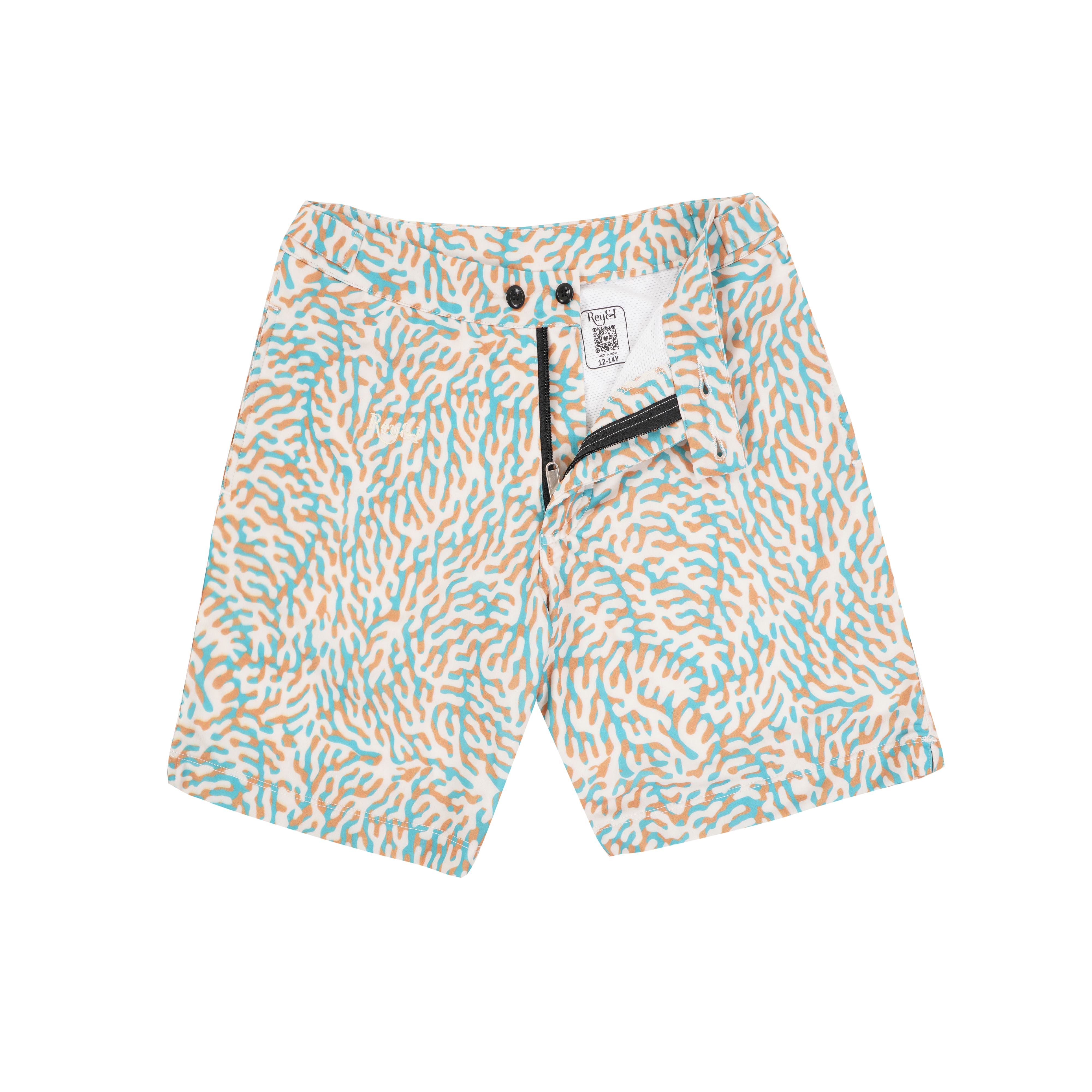 Ignite his imagination with this colourful coral-reef inspired patterns of aqua green, sandstone and cream. Our Aqua Junior short features alluring ocean hues, 4 way stretch fabric and adjustable waist buckles, ensuring your boy will stay comfortably every time.