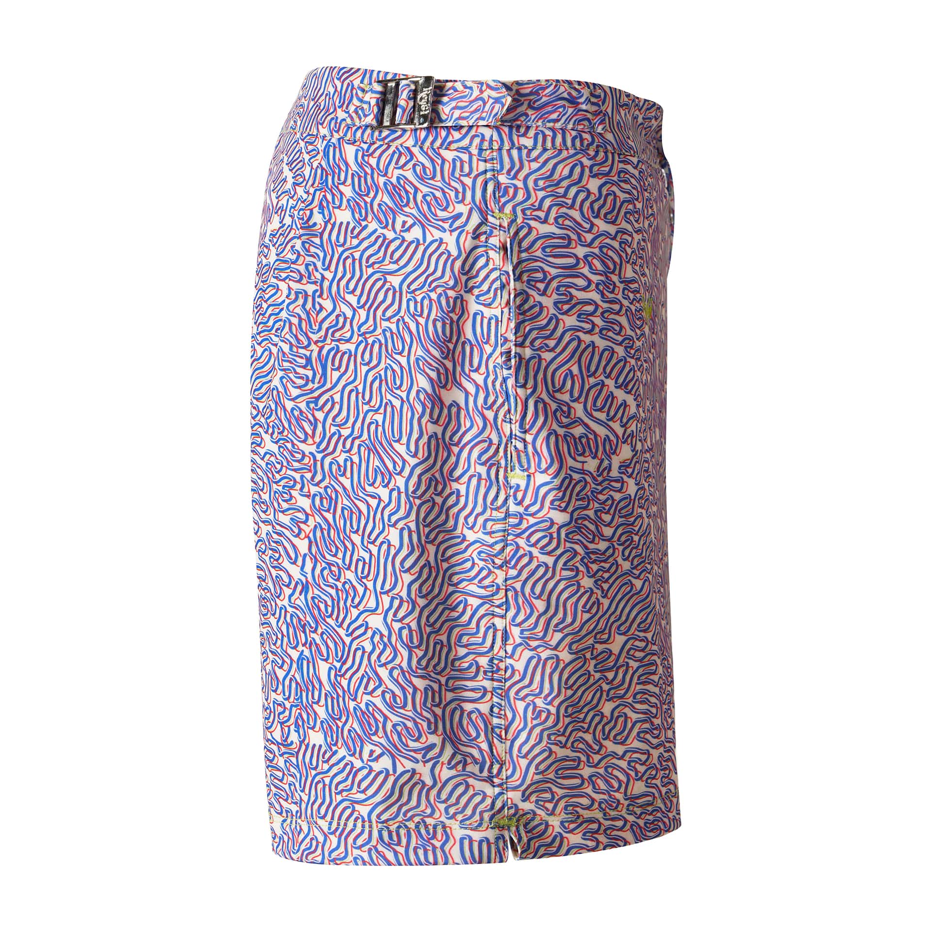 Nothing spells beach ready like our Andaman Vino print, featuring adjustable waist buckles, for a perfect fit every time. Wavy, coral-reef inspired patterns of blue, red and white, overlap and intermingle against an off-white background to create an eye-catching, 3D print that jumps out and demands attention to both the wearer and the coral reefs under threat from global warming.