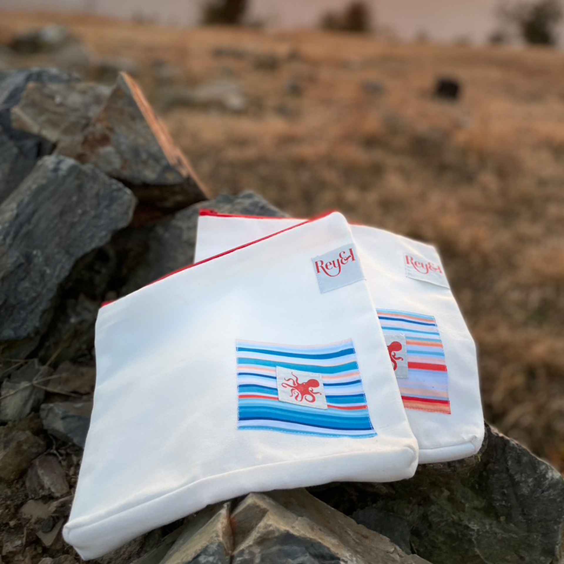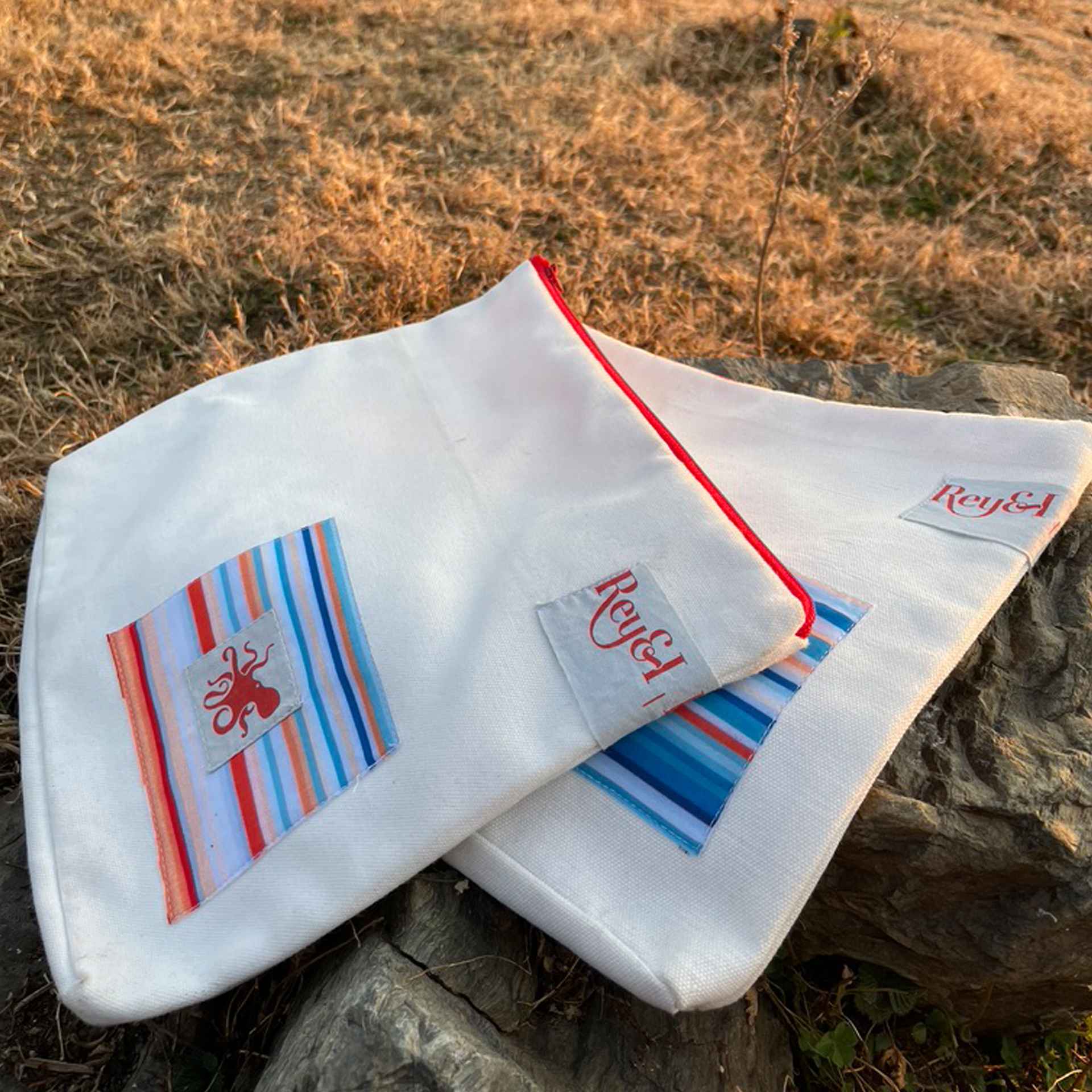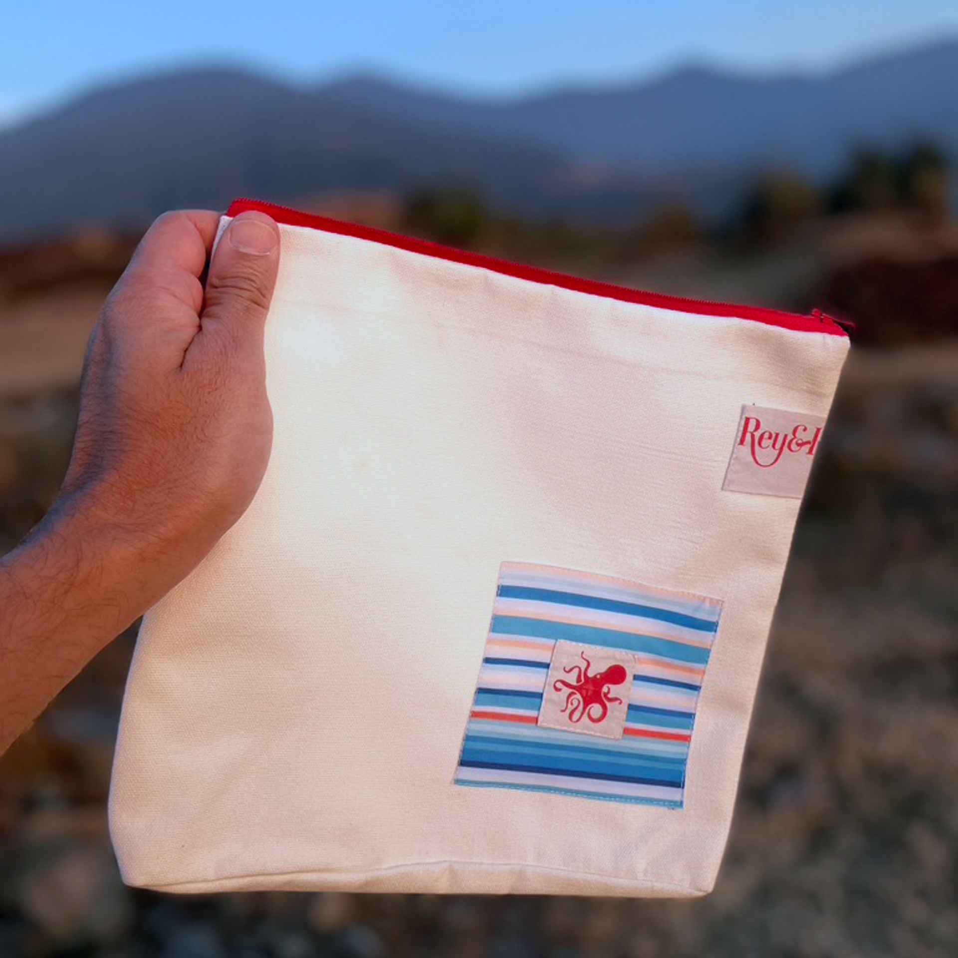 The Rey Travel Pouch offers all the utility you need on your travels. This classy fella is perfect as a toiletry kit, pouch for electronics or a multipurpose travel bag. Made from a thick canvas shell and accentuated by waste fabric pieces, the Rey Travel Pouch is truly one-of-a-kind. It comes with a little loop to make attaching to your other bags super easy and is secured by a premium zipper.