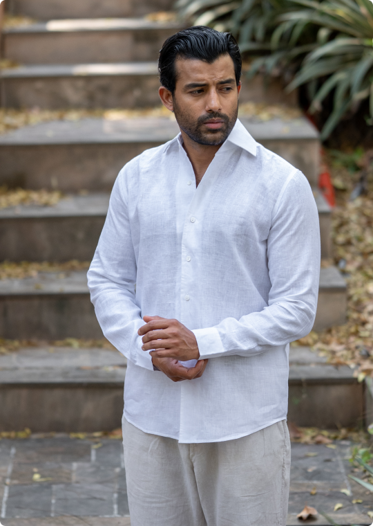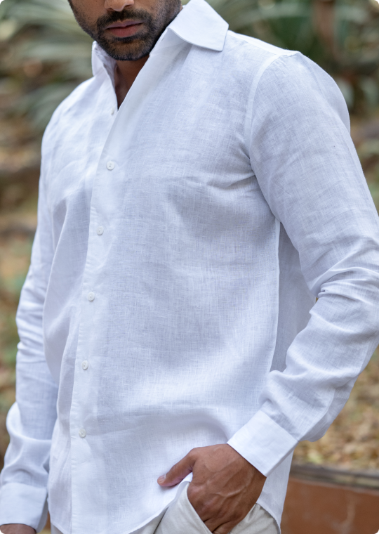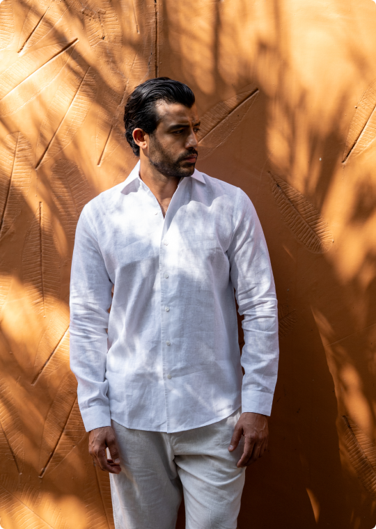 A classic linen shirt, elevated by a hidden detail, an embroidered fish at the back of the collar, like a quiet secret. Made to soften with wear, these shirts move from day to night, from home to celebration, with a natural ease. Wear them buttoned up for structure or open over a tee for relaxed layering.